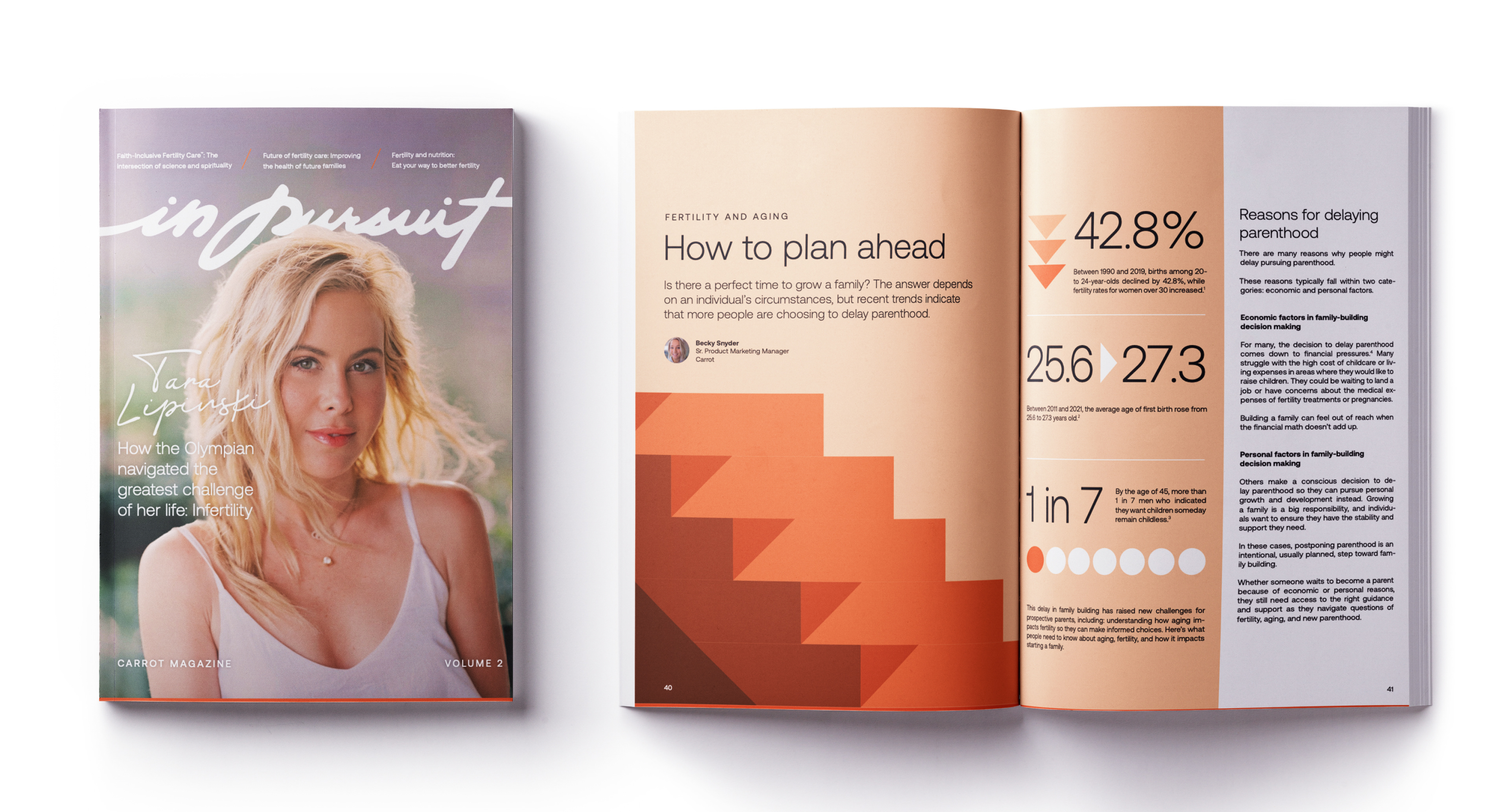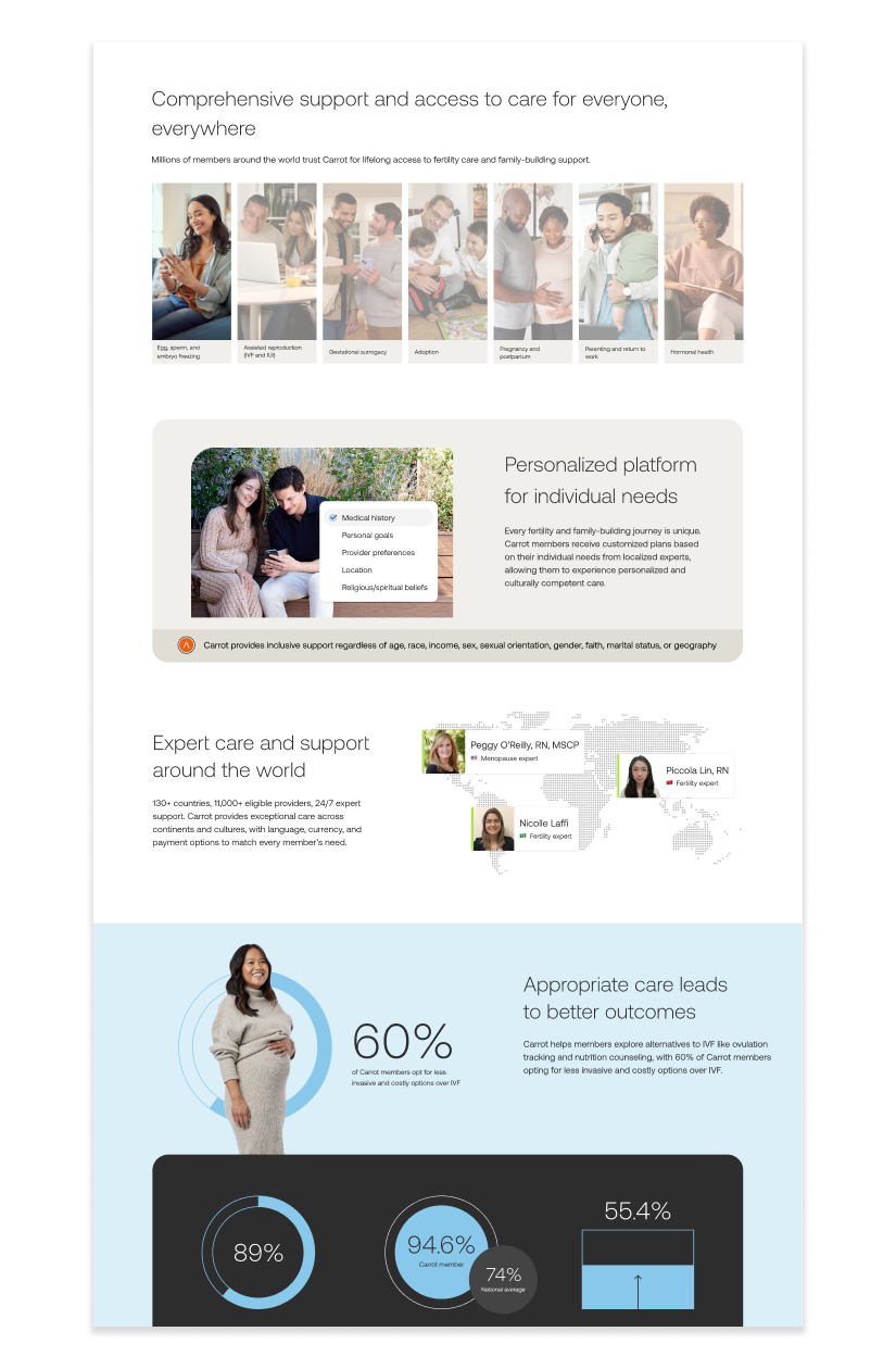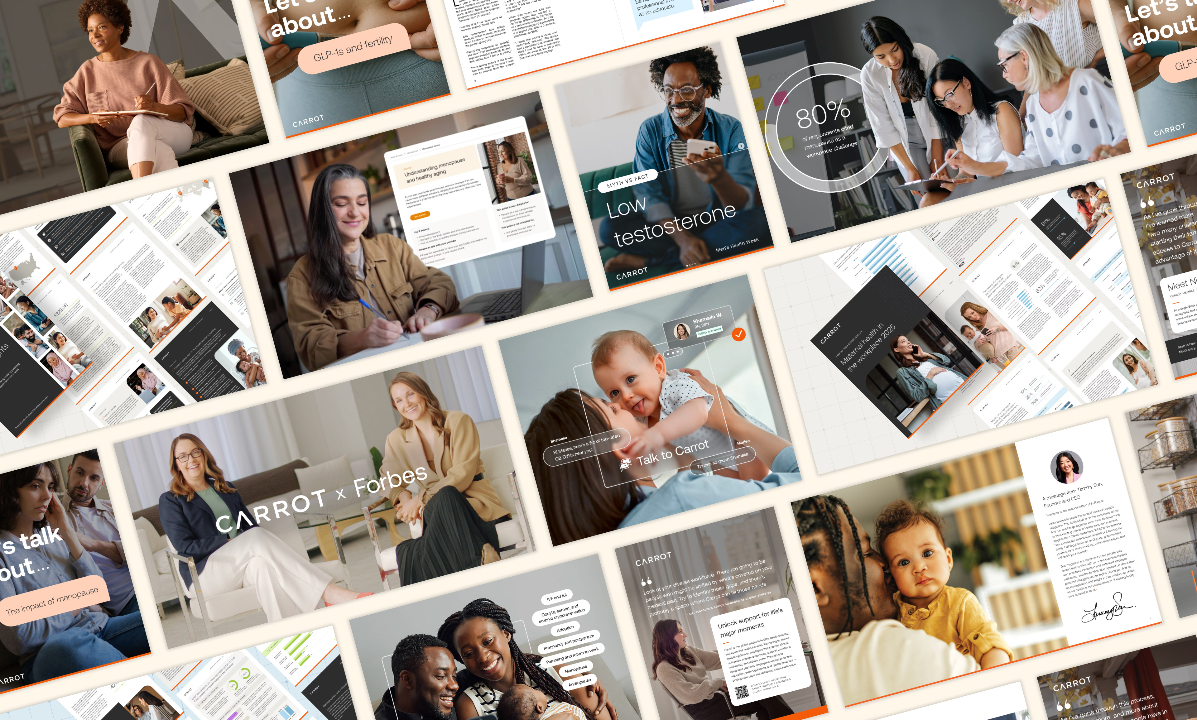Carrot is a fertility, family-building, and hormonal health platform providing comprehensive benefits for employees. I was hired as Senior Art Director to build the company’s first in-house brand design team and later promoted to Director of Brand where I oversaw a team of art directors, designers, video editors, and web developers.